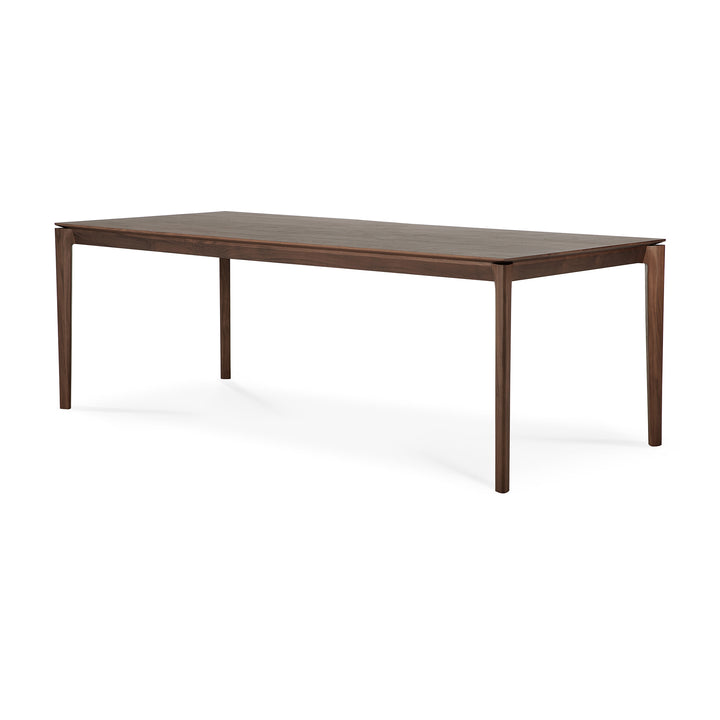 Our best-selling solid wood dining table. Its tapered legs make it minimalist and timeless yet sturdy. Choose between solid white oak with a hard wax oil finish or brown-tainted solid FSC®-certified teak with a varnish finish.