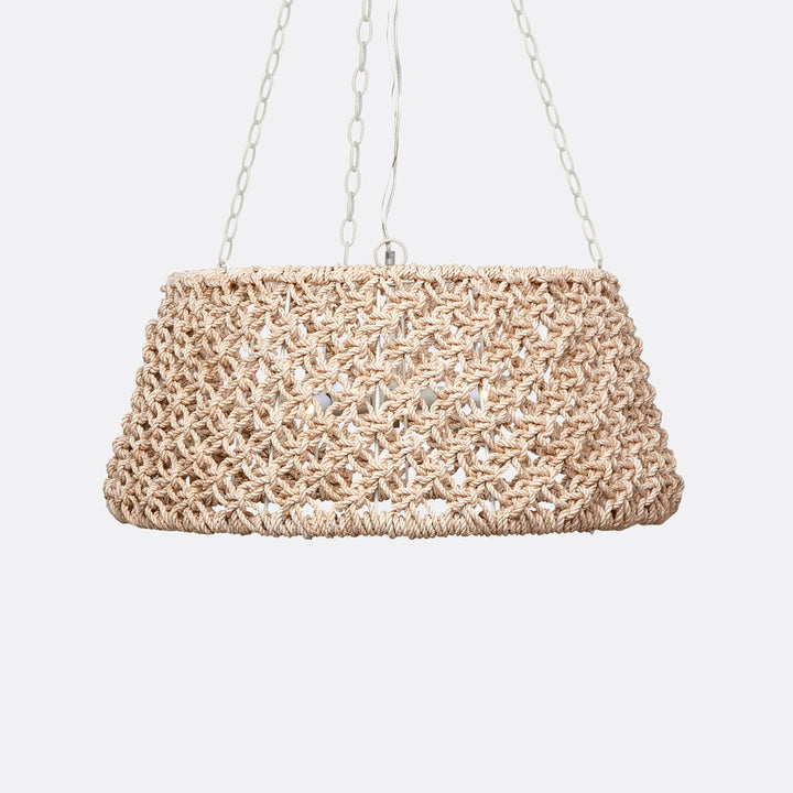 All-natural abaca rope is expertly woven to create the texturally patterned chandelier. Its classic drum shape and organically neutral hue make it incredibly versatile. Even the bars are wrapped in rope to give it a totally finished look.