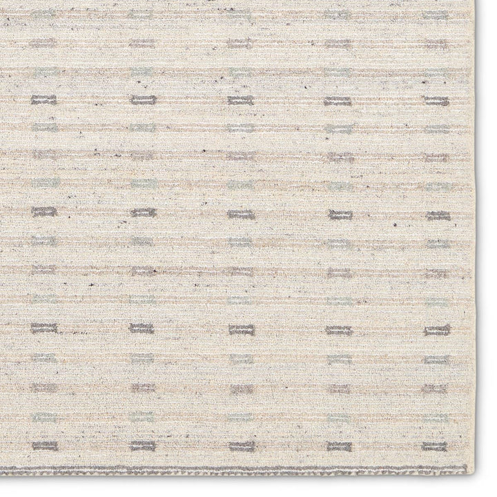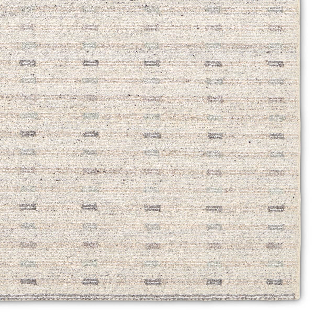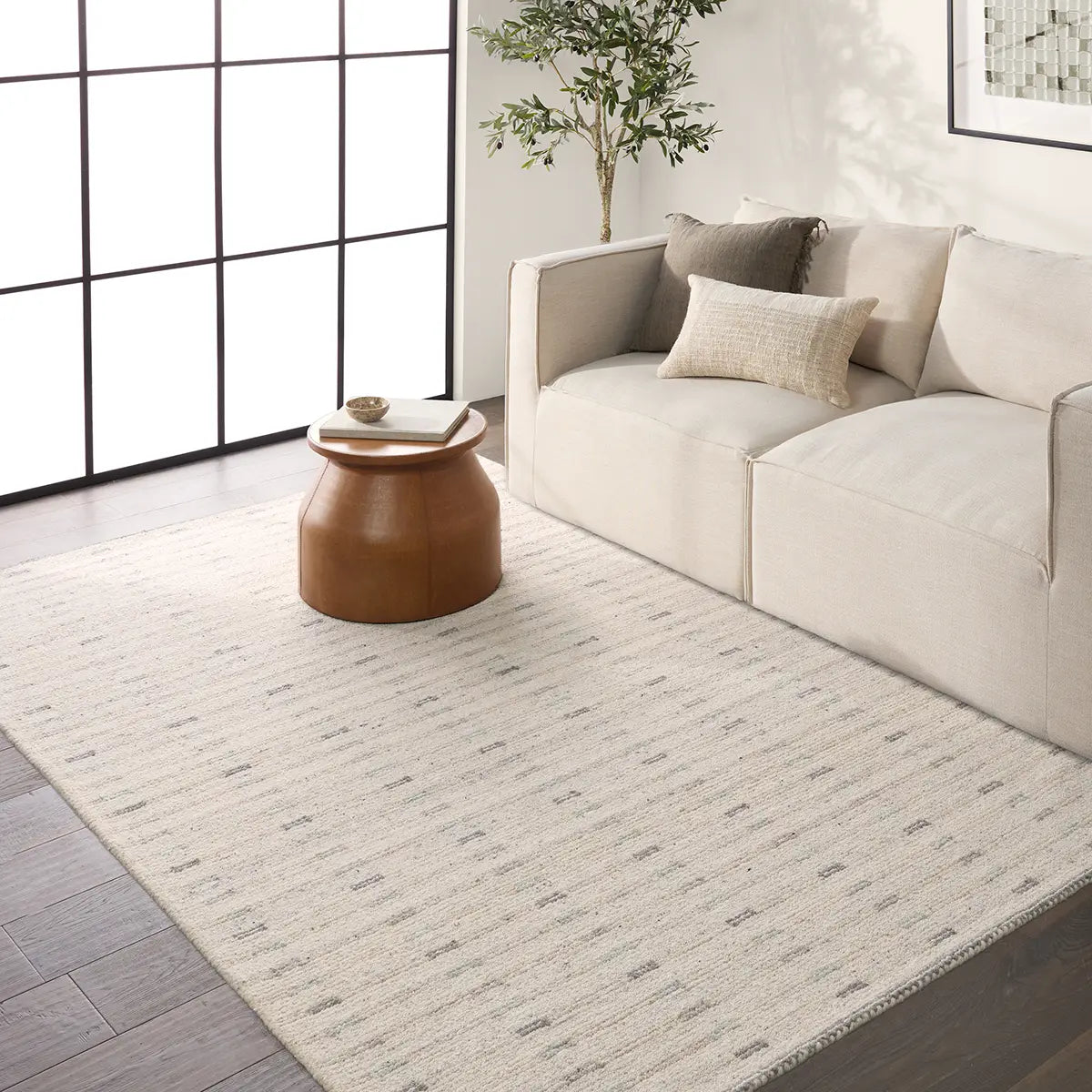 A plush, hand tufted wool rug is soft underfoot. 100% hand-looped wool yarns of cream and taupe artfully mingle with shades of weathered gray and greige-green.