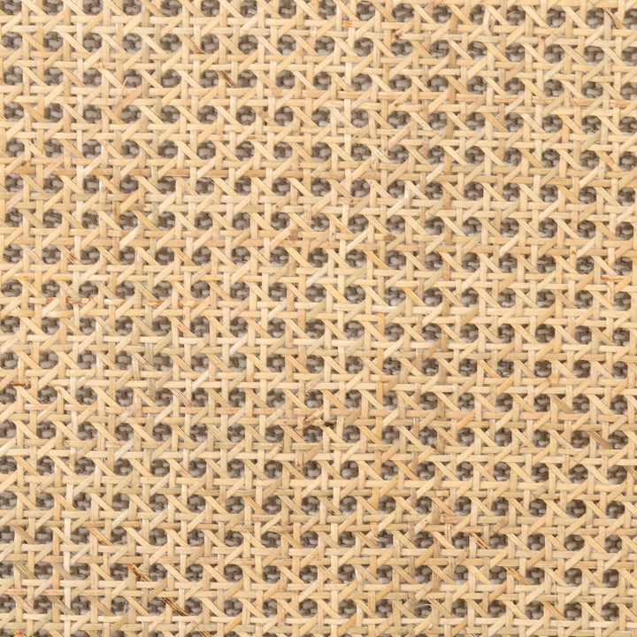 Upholstered in tailored high performance fabric, natural rattan adds organic texture, contrasted with gunmetal iron legs.