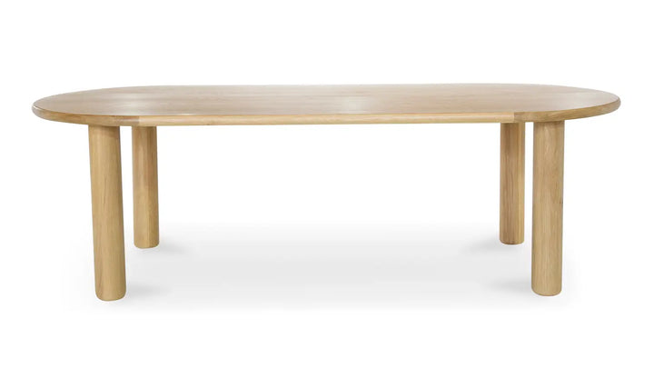 With its thick, rounded edge and sleek column legs, this dining table adds a touch of warmth, comfort and sustainable design. Crafted from FSC-certified oak wood and veneer, it showcases exquisite craftsmanship and ensures responsible sourcing from environmentally managed forests. Please note there is a lot of natural variation to the wood tones, no two are exactly alike and designed to show a range of natural oak colors.
