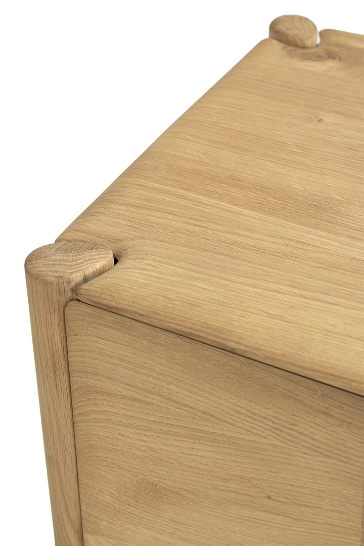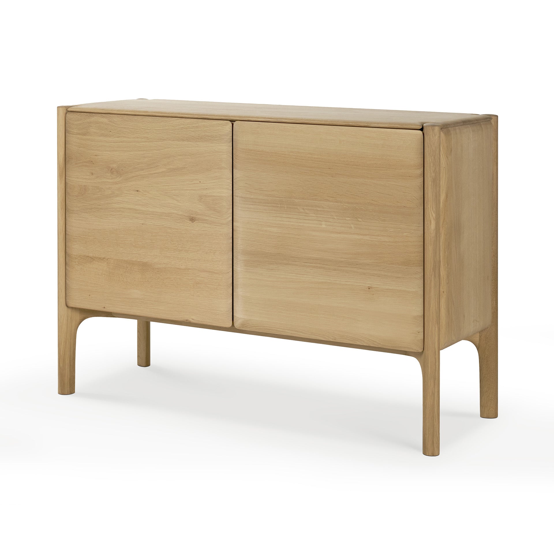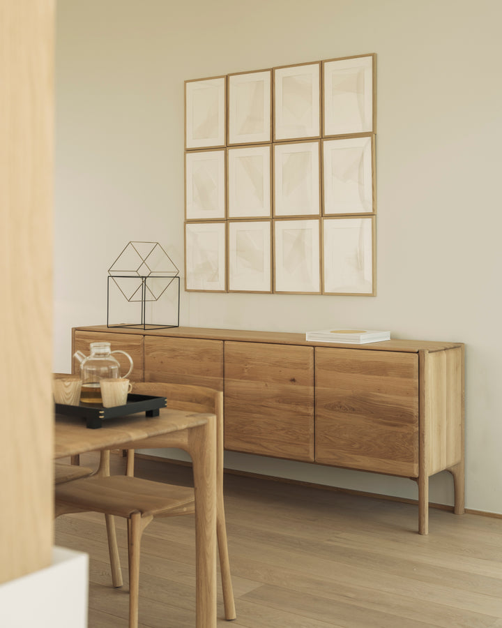 Solid white oak sideboard with a hardwax oil finish. Features push open doors. Sculptural nature-inspired design.