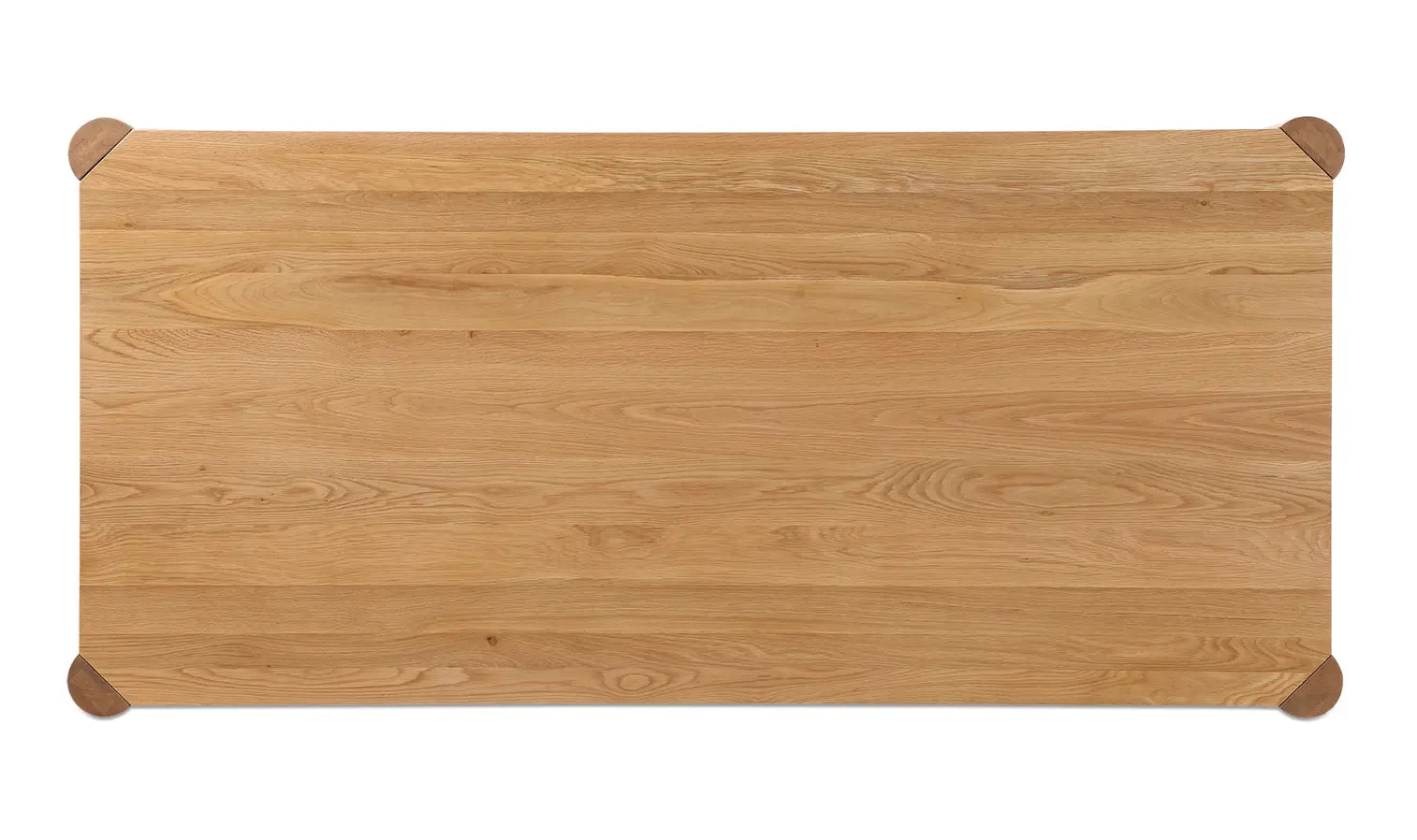 This dining table turns soft geometry into a design signature, with gently curved corners and thick, sculptural legs that feel both modern and familiar. Made of solid white oak with a natural finish, it celebrates the organic beauty of the wood—subtle grain variations, warm tones, and all things warm and welcoming.
