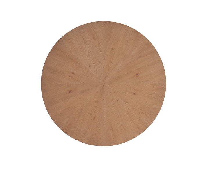 This coffee table features a beachy, knotty oak finish that grounds the space while still feeling organic and modern.